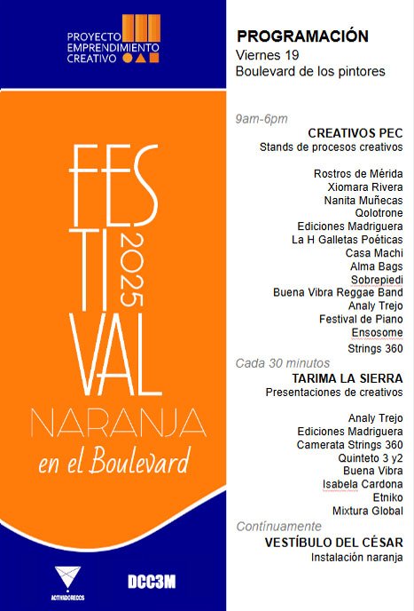 La tercera fase de proyección es la modalidad por medio de la cual, por una parte, se da visibilidad a las metas y objetivos del PEC, mostrando los procesos y productos de la comunidad de creativos, y por otra, se impulsa la activación integral del ecosistema cultural del centro de Mérida, un distrito cultural y creativo en potencia. Una faceta de esta proyección es el Festival Naranja, una vitrina cultural que toma lugar en uno de los espacios de cultura creativa más vibrantes de la ciudad. La otra faceta es digital y se muestra a través de la página web y las redes sociales del proyecto.